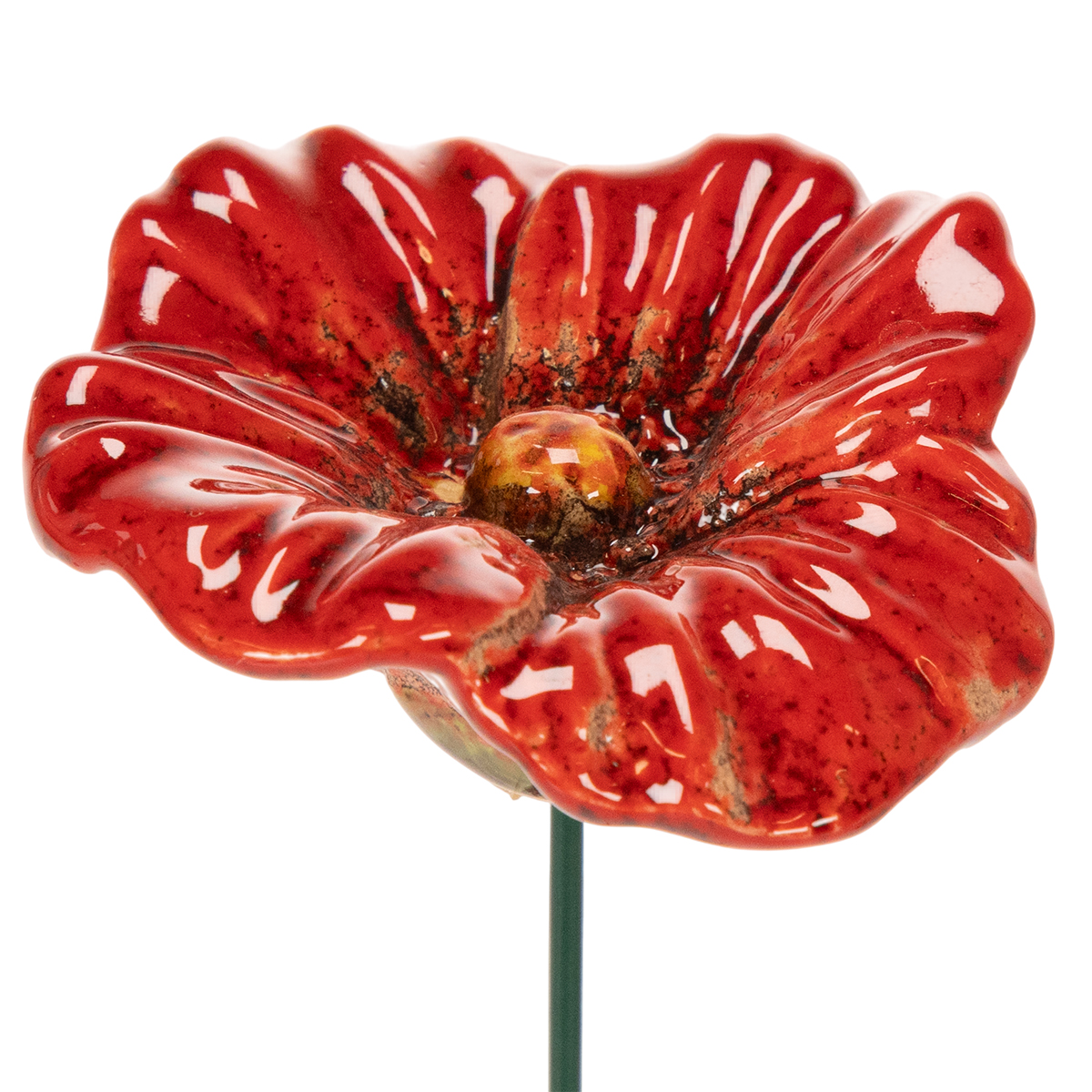 Keramik Mohnblüte Romantische Dekoration für Frühlingsgarten und Beete 31cm 6St