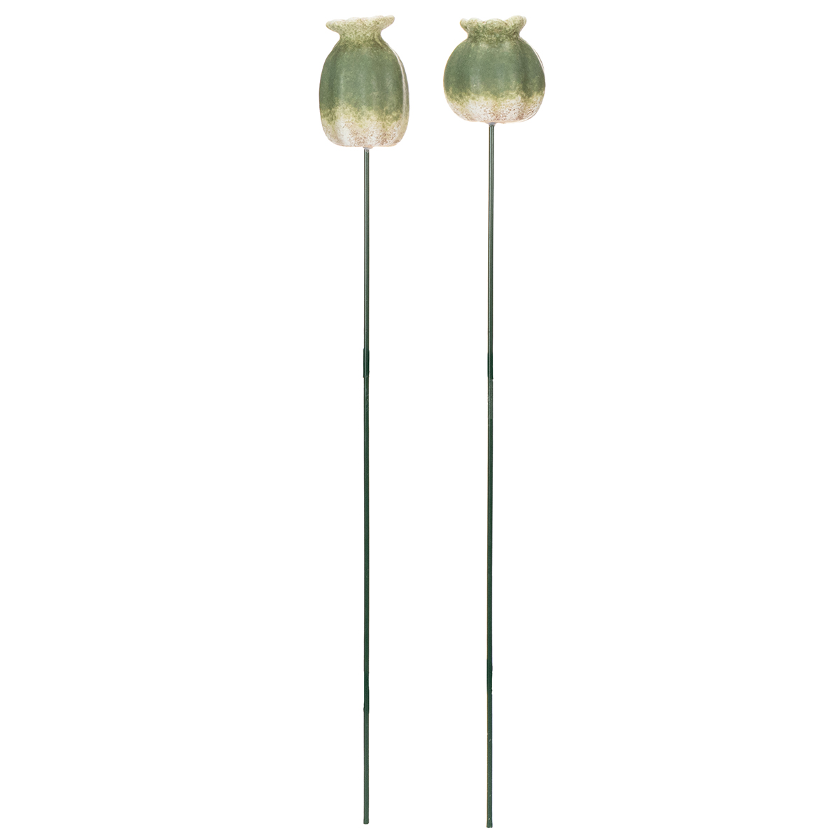 Mit diesen dekorativen Mohnkapseln am Stab als Gartenstecker bringen Sie ganz mühelos eine stilvolle und zeitlose Note in Ihren Außenbereich. Vielleicht sind Ihre Pflanzkübel bereits liebevoll gestaltet und es fehlt nur noch ein kleines Highlight – genau hier setzen diese Mohnkapseln an.Die Gartenstecker in ihrer natürlichen grünen Farbgebung und der fein strukturierten Optik passen perfekt in jede Umgebung. Ob im Blumenbeet arrangiert, in Pflanzkübeln dekoriert oder gar als Wegmarkierung eingesetzt, sie ziehen Blicke auf sich und verbreiten eine ruhige, harmonische Atmosphäre. Die Kombination aus Keramik und der handgemachten Optik der Oberflächenstruktur macht sie besonders authentisch. Es sind die kleinen Details, die sie so charmant machen!