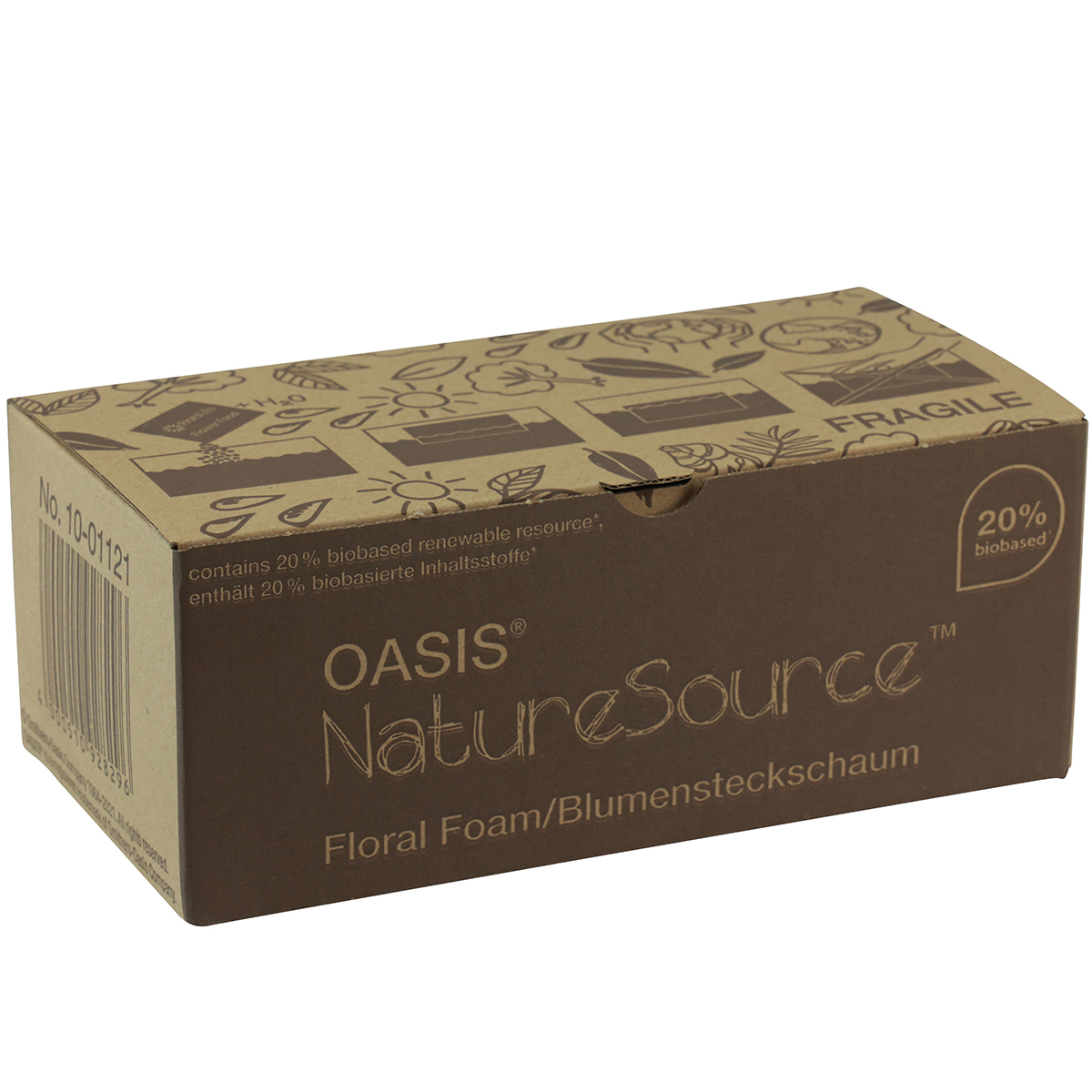 Denn die Weltneuheit im Bereich des Blumensteckschaums hat einen Anteil an Biolit und somit an biobasierten Inhaltsstoffen. Dabei weist NatureSource Steckschaum die gleichen Eigenschaften wie die bewährten Steckschaumziegel von Oasis auf.