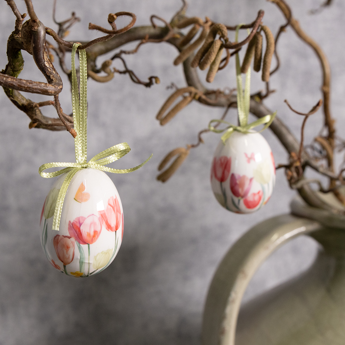 Osterei Dekoration Tulpenmotiv mit Band: Der perfekte Hingucker für Ihre Frühlingsdeko