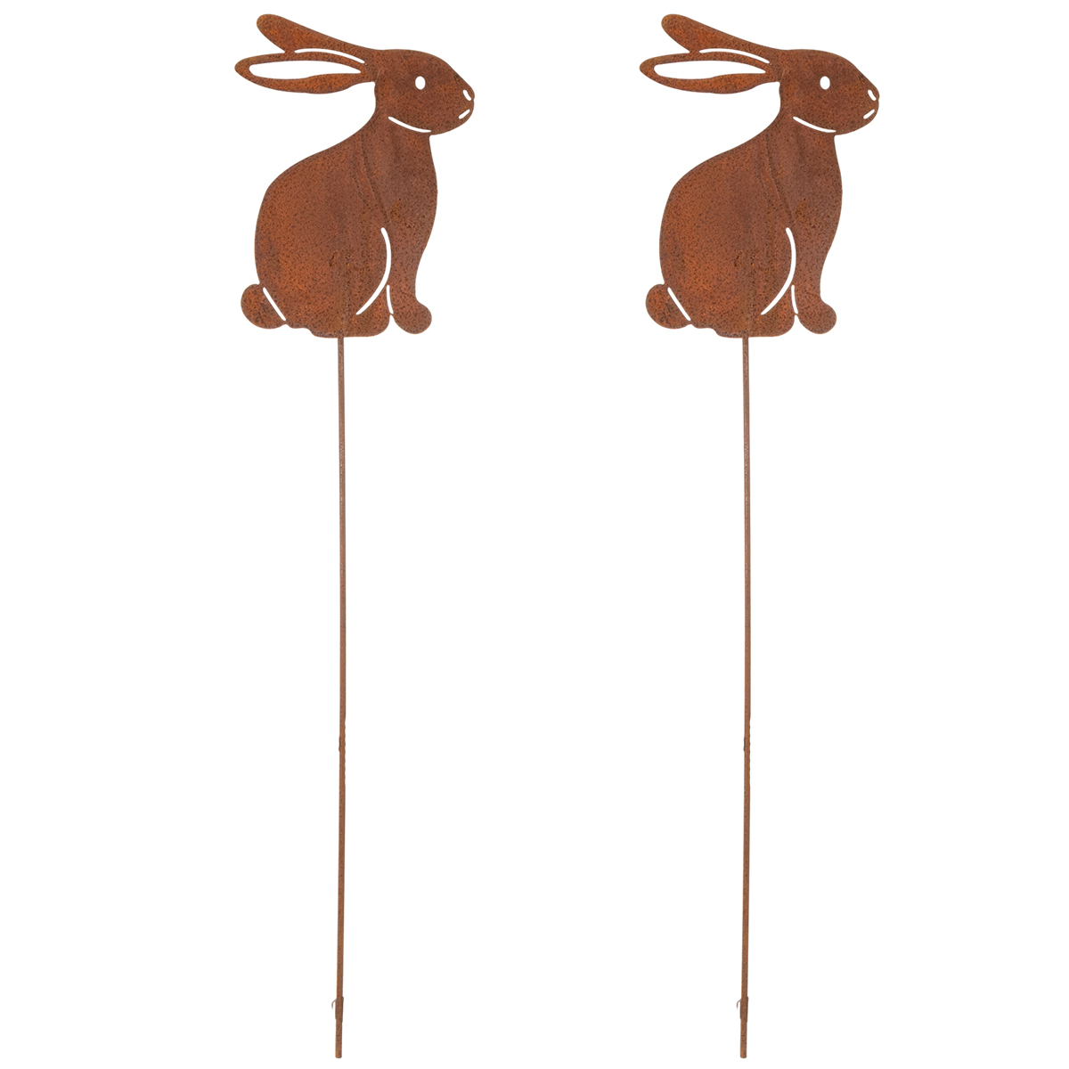 Unser 80 cm hoher Osterhase aus Edelrost wird sicherlich schnell zum Blickfang in Ihrem Garten. Der hübsch gestaltete Hase steht auf einem stabilen Metallstab, der sich leicht in die Erde, ein Blumenbeet oder einen Blumentopf stecken lässt. Mit diesem Hasen holen Sie sich nicht nur eine saisonale, sondern auch eine langlebige Dekoration, die Ihnen Jahr für Jahr Freude bereitet. Das Material aus rostigem Metall unterstreicht den charmanten Vintage-Look, der besonders gut zu einem Landhausstil, aber auch zu modernen Gartengestaltungen passt. Die braune Rostpatina harmoniert wunderbar mit grünen Pflanzen und bunten Frühlingsblumen – eine natürlich schöne Kombination!