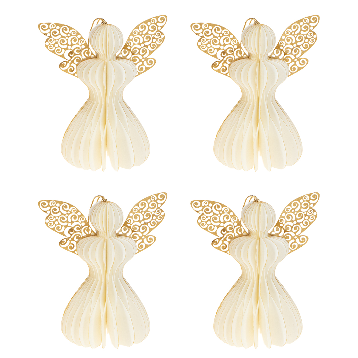 Papierengel Baumschmuck Engel Anhänger Weiß Gold 12cm 4 St