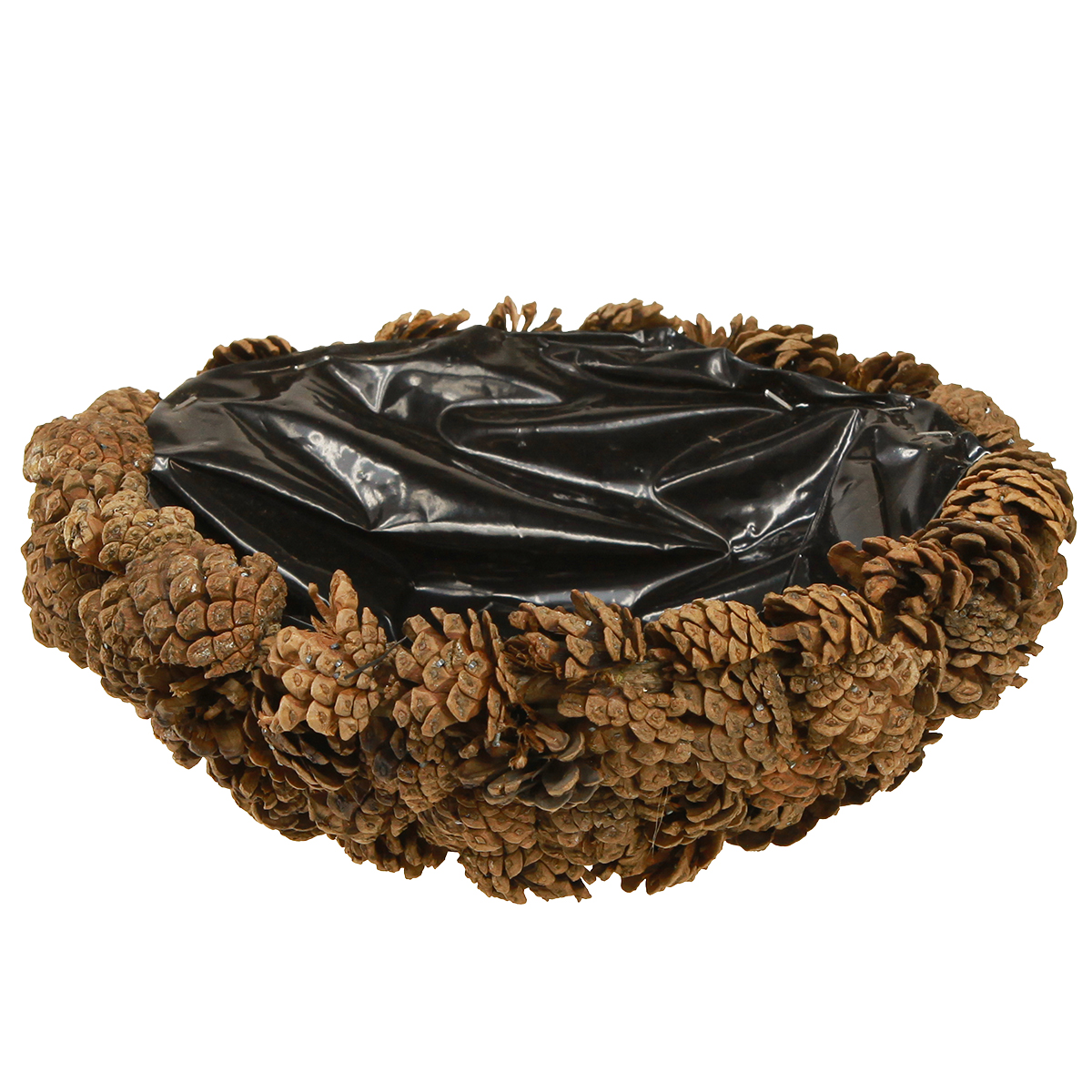 Die Schale punktet nicht nur mit einer ansprechenden Optik, sondern auch mit funktionalen Vorteilen. Die innenliegende, schwarze Folie ist wasserfest und sorgt dafür, dass Bepflanzungen kinderleicht gelingen. Ob als Herbstdekoration mit Heidekraut, als adventliche Tischdeko mit Tannenzweigen und Zapfen oder als Basis für einen Trauerkranz – diese Zapfenschale ist universell einsetzbar. Tipp: Kombinieren Sie sie mit stimmungsvollen Kerzen oder kleinen Lichterketten, um ein warmes Ambiente zu schaffen.