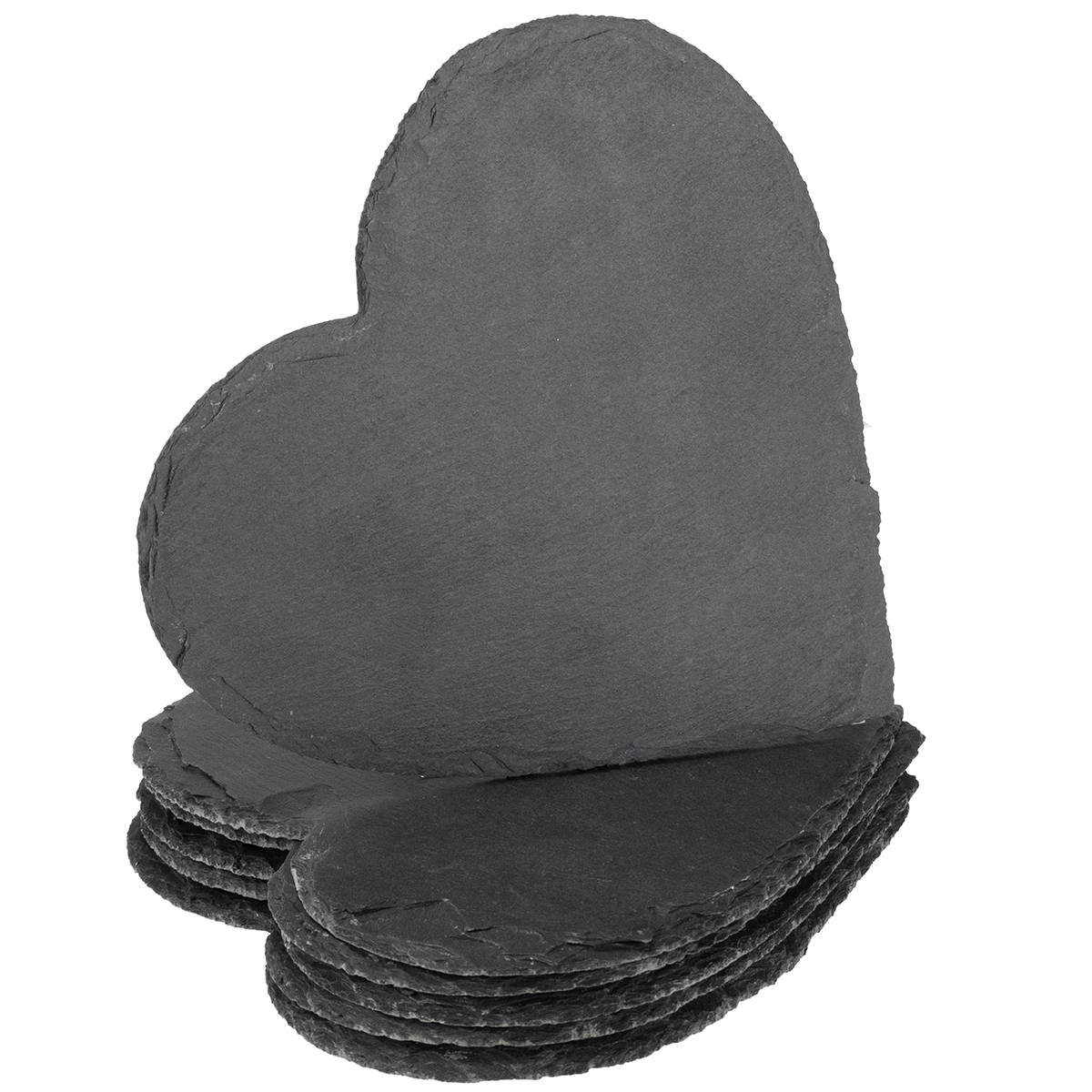 Die Kombination aus natürlichem Schiefer und der romantischen Herzform macht diese Platten zu etwas ganz Besonderem. Jede Platte ist circa 20 cm groß und bietet damit genug Fläche, um kreativ zu werden – sei es als Untersetzer, Tischnummernhalter für Hochzeiten oder Basis für florale Arrangements. Das robuste Material eignet sich sowohl für Innen- als auch für Außenbereiche. Stellen Sie sich vor, wie diese Platten in Ihrem Garten arrangiert werden: als Basis für Kerzen oder Pflanzen, vielleicht kombiniert mit rustikaler Holzdeko? Einfach wunderschön!