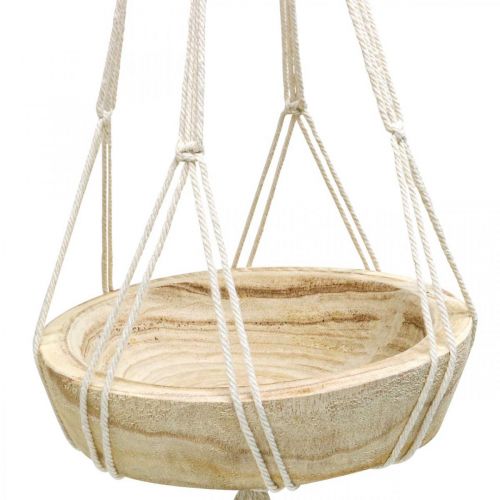Boho Makramee Blumenampel Hängedeko Fensterdeko mit Blumenschaukel Brett 40x15cm im Natur-Weiß