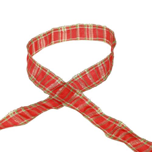 Festliches kariertes Geschenkband Rot Grün Gold 40mm 20m