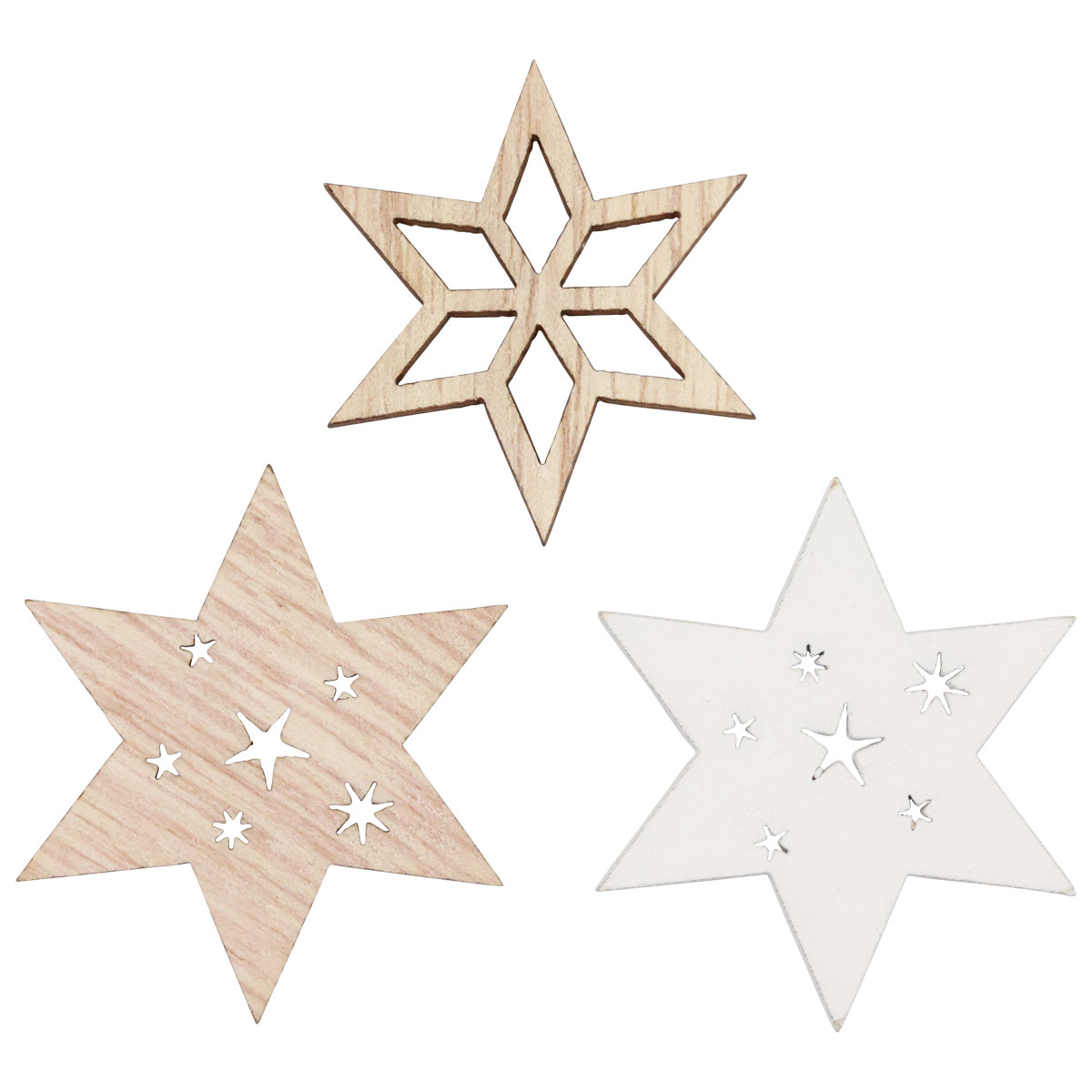 Streudeko Weihnachten Holzsterne Weiß/Natur Ø4cm 72 St