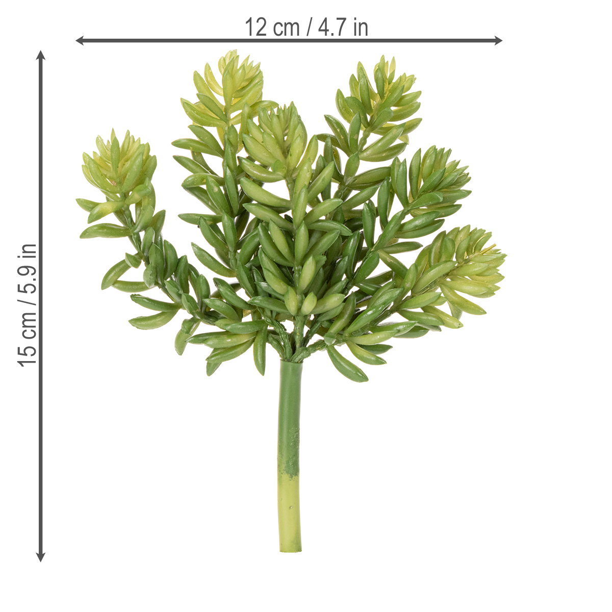 Unsere künstliche Sukkulente überzeugt nicht nur durch ihr realistisches Design, sondern auch durch die vielfältigen Möglichkeiten, sie einzusetzen. Die detailgetreue Gestaltung und die satte, grüne Farbe machen sie zu einem perfekten Deko-Highlight in jedem Raum. Der dicke, stabile Stiel sorgt dafür, dass die Pflanze in jede Vase oder jedes Arrangement passt, während ihre sechsfach verzweigten Äste eine besonders natürliche Optik bieten. Die Kunstblume eignet sich besonders für alle, die auf der Suche nach pflegeleichten Dekorationsmöglichkeiten sind. Mit einer Höhe von 15 cm passt sie ideal auf Regale, Sideboards oder in Vitrinen. Im Zusammenspiel mit weiteren dekorativen Elementen wie Holzschalen, Kerzenhaltern oder minimalistischen Glasvasen kreiert sie schnell ein harmonisches Gesamtbild. Sie bevorzugen einen modernen oder skandinavischen Stil? Diese Sukkulente fügt sich nahtlos ein und wird garantiert zum Blickfang! Auch im Büro macht die Sukkulente eine tolle Figur. Plätze wie der Empfangsbereich, Wartezimmer oder Konferenzräume profitieren von der entspannenden Ausstrahlung und den beruhigenden Grüntönen. Sie möchten Ihre Büroumgebung verschönern, ohne dass jemand Zeit in die Pflege investieren muss? Diese Kunstpflanzen bieten dafür die perfekte Lösung.