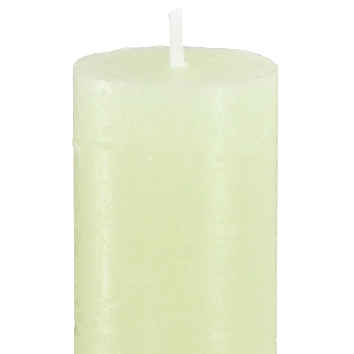 Diese Stabkerzen sind nicht nur ein Hingucker auf jedem Tisch, sondern auch durchgehend in einem ansprechenden Hellgrün gefärbt, was ein Ausbleichen der Farbe, auch bei langem Abbrennen, verhindert. Die Kerzenmaße von 34x240mm eignen sich perfekt für elegante Tischarrangements und verbreiten dabei ein warmes, einladendes Licht.