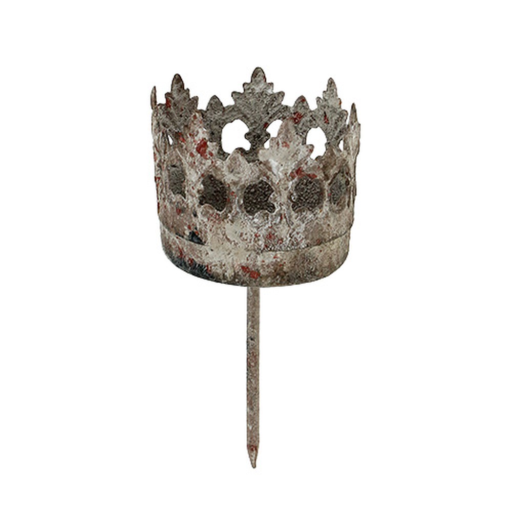 Wenn Sie gerne mit Liebe zum Detail dekorieren, werden Sie sich an diesem hübschen Teelichthalter zum Stecken besonders erfreuen. Das graue, rustikal bearbeitete Metall und der Rand aus verschnörkelten Ornamenten sorgen nämlich für einen antiken Vintage-Look mit ganz eigenem Charme. So können Sie den Teelichthalter als außergewöhnlichen Hingucker zum Beispiel in Blumentöpfen befestigen oder auch in einem hohen Dekoglas, das Sie zuvor mit Sand, Perlkies oder Steinen gefüllt haben.Dank des spitzen Steckdorns lässt sich der Teelichthalter problemlos in Materialien wie Styropor, Steckschaum, Erde oder in Tannenkränzen fixieren. Um elegante Akzente zu setzen, können Sie den filigran gearbeiteten Halter beispielsweise auch in Tischdekoration für Hochzeiten oder in besonders originelle Herbst- und Weihnachtsgestecke einbinden. Die kleinen Löcher am oberen Rand lassen das Licht der Kerze schön flackern, was für ein angenehmes Ambiente sorgt.