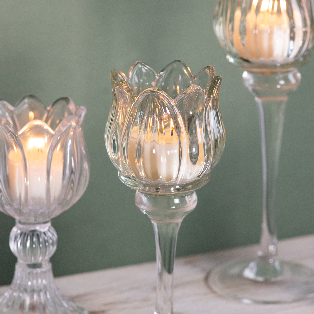 Hochwertiger Teelichthalter aus Glas in Blumenform – ein elegantes Wohnaccessoire