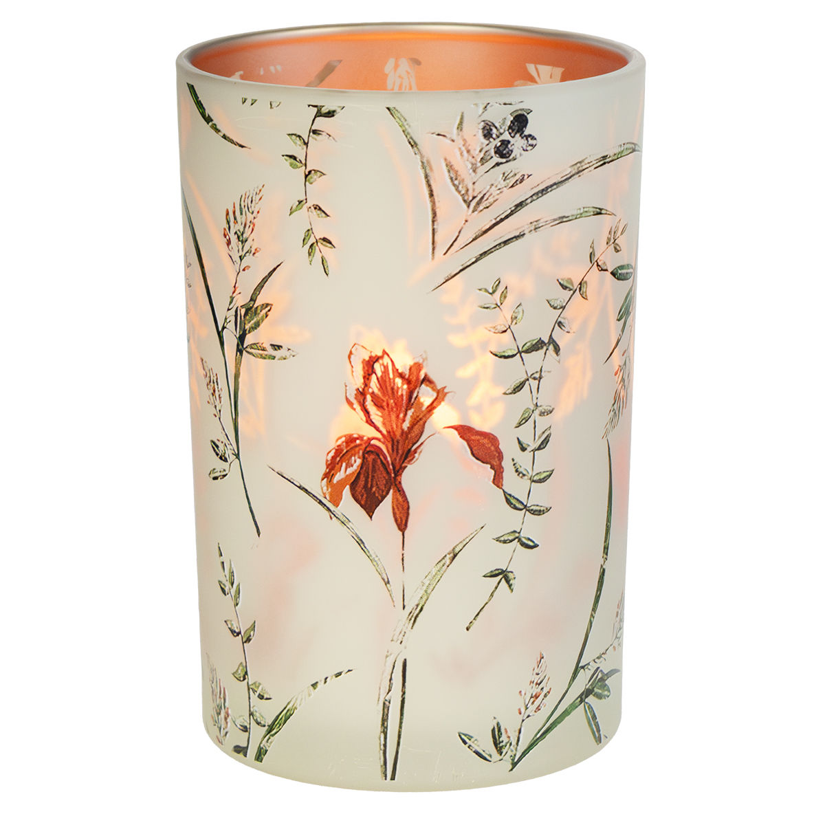 Wunderschöner Glas Teelichthalter im floralen Blütendekor