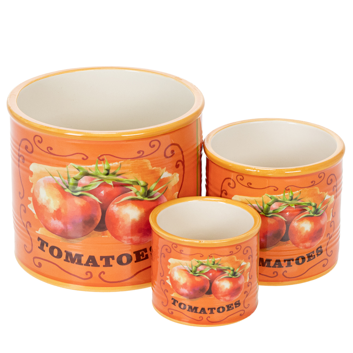 Produktname: Tomaten Pflanztopf Set Keramik Dekorative Blumentöpfe für Küche und Retro Deko 14cm 3er-Set
