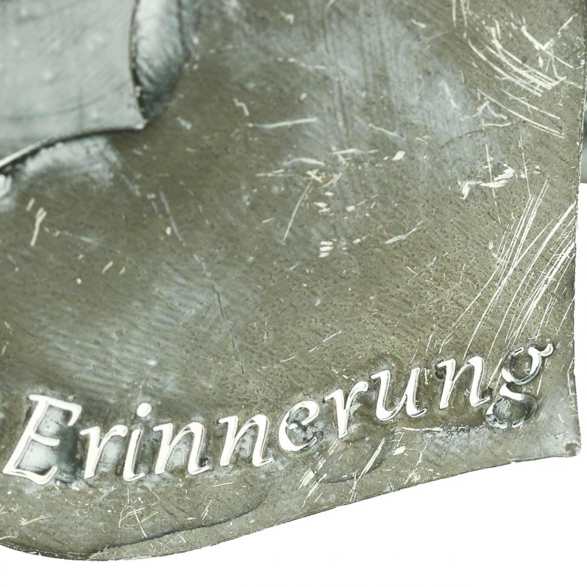 Die Herzstecker sind aus flachem Metall in Silbergrau gefertigt, das teilweise künstlich oxidiert ist und Weiß gewaschen wurde, was dem Metallstecker eine rustikale Optik verleiht. Der Trauerspruch wurde jeweils sorgfältig in schönen geschwungenen Lettern aus dem Herz zum Stecken ausgestanzt und befindet sich an der linken Seite der Metallherzen.