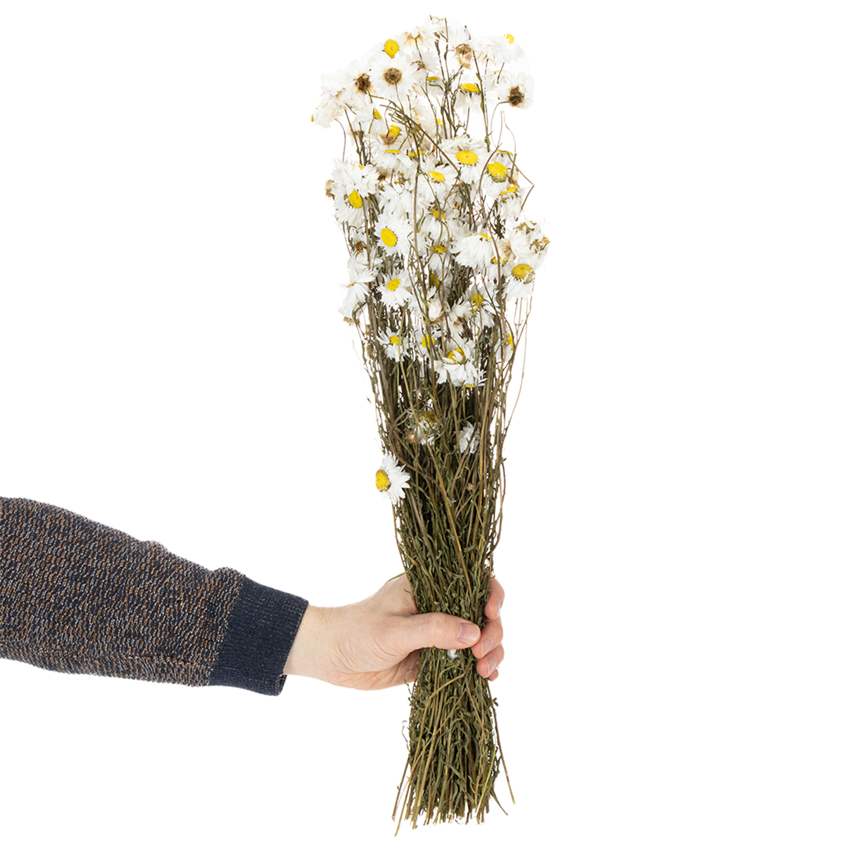 Wie Trockenblumen wie aus dem Bilderbuch sieht das Acroclinium mit den weißen Blüten aus. Für trendige Trockenfloristik wurden die Blumen sorgfältig ausgewählt, für Farbechtheit schonend getrocknet und als Bund zusammengestellt. Der Naturartikel muss nicht gegossen werden und ist durch seine Langlebigkeit ein besonders nachhaltiger Blumenschmuck.