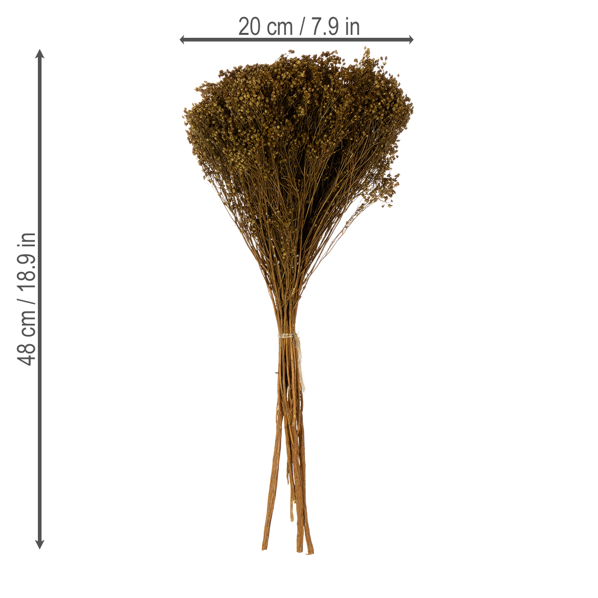 Sie erhalten das getrocknete gefärbtes Bloom Broom in einem Bund zu circa 150 Gramm. Die Länge der Zweige schwankt ungefähr zwischen 40 und 48 Zentimetern. Der Durchmesser des Bunds beträgt etwa 20 Zentimeter.