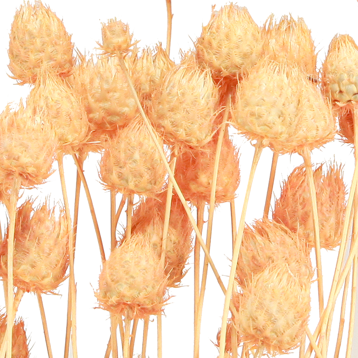 Verleihen Sie Ihrer Inneneinrichtung einen Hauch von natürlicher Schönheit mit unseren lachsfarbenen Erdbeerdisteln. Diese hochwertigen Trockendisteln sind perfekt für rustikale oder moderne Dekorationskonzepte geeignet und bieten vielfältige Gestaltungsmöglichkeiten.