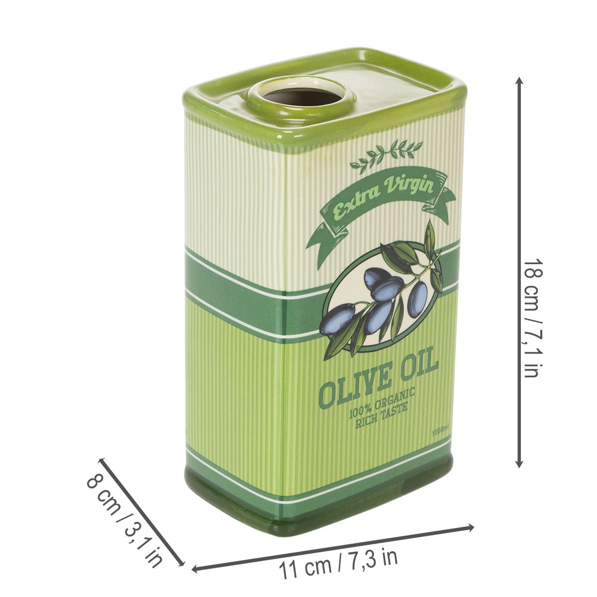 Auch als Geschenkidee begeistert das Keramik-Gefäß im Olivenöl-Design. Verpacken Sie es liebevoll und schenken Sie ein Stück mediterraner Lebensfreude. Vielleicht in Kombination mit einer hochwertigen Flasche Olivenöl oder einem passenden Küchenaccessoire, wie weiteren Keramikbehältern aus derselben Kollektion? Ihrer Kreativität sind keine Grenzen gesetzt.