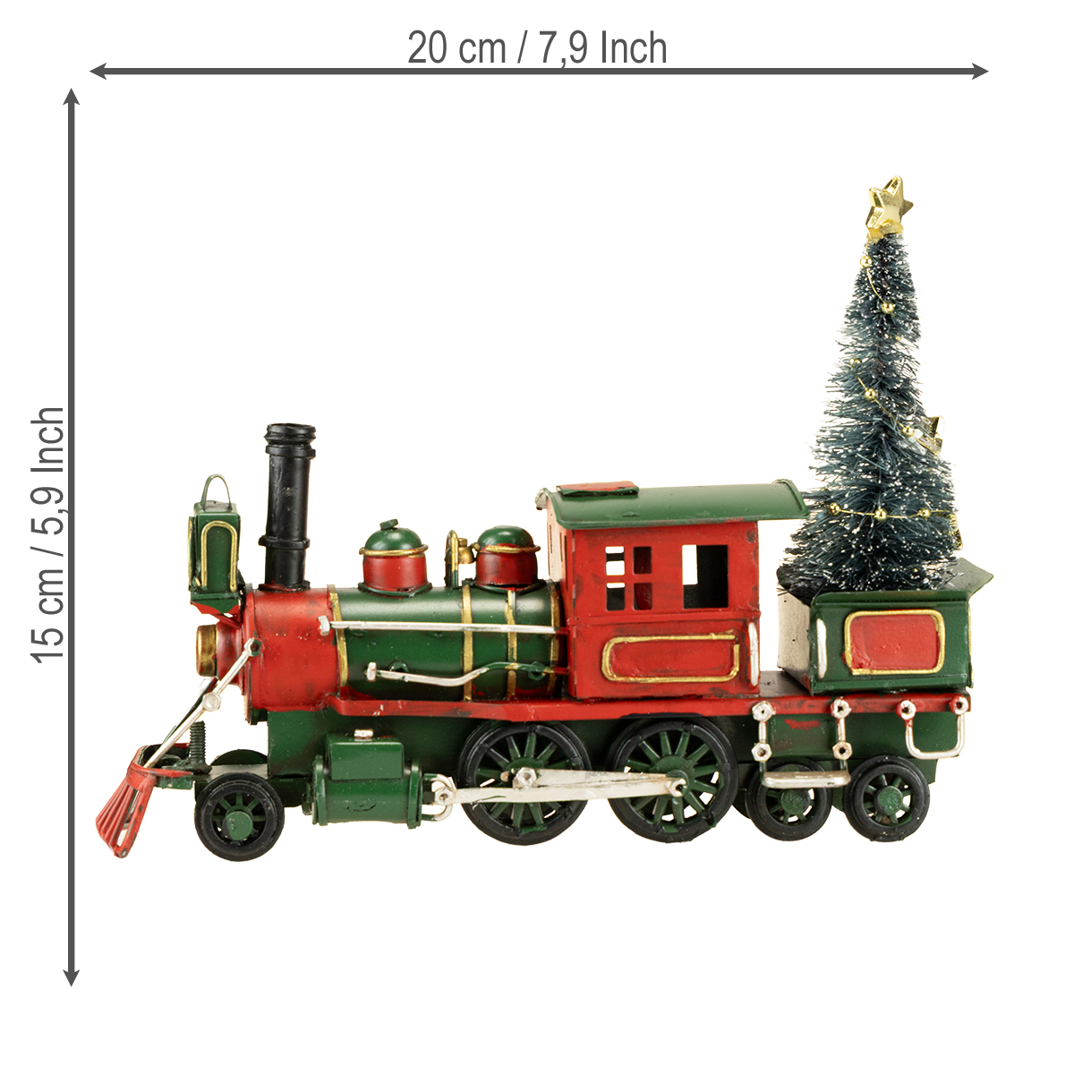 Produktname: Weihnachtsdeko Metallzug mit Tanne in Grün-Rot für Tisch und Fensterbank