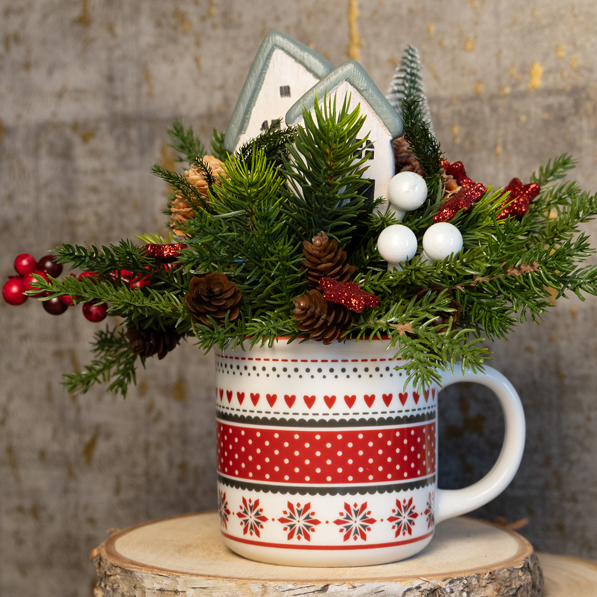 - DIY-Dekoration: Befüllen Sie die Tasse mit Tannenzweigen und Zimtstangen