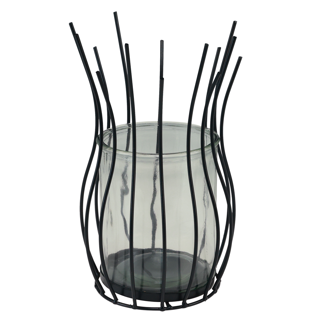 Das große Windlicht aus Glas in einer puristischen schwarzen Metall-Deko ist mehr als nur ein Deko-Objekt. Es ist ein vielseitiges Element, das Ihre kreativen Gestaltungsideen zum Leben erweckt. Mit geschwungenen Metallstäben, die an eine Kelchblüte erinnern, setzt dieses Windlicht geschmackvolle Akzente.