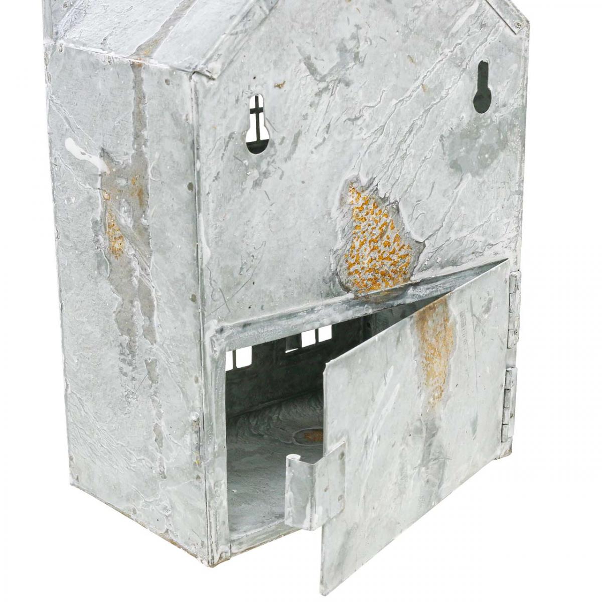 Das Teelichthaus besitzt auf der Rückseite eine Tür, um es mit Kerzen, Teelichtern oder LED-Lichtern zu befüllen. Praktisch sind außerdem die beiden Aussparungen auf der Rückseite, um das Lichthaus an einer Wand aufzuhängen.