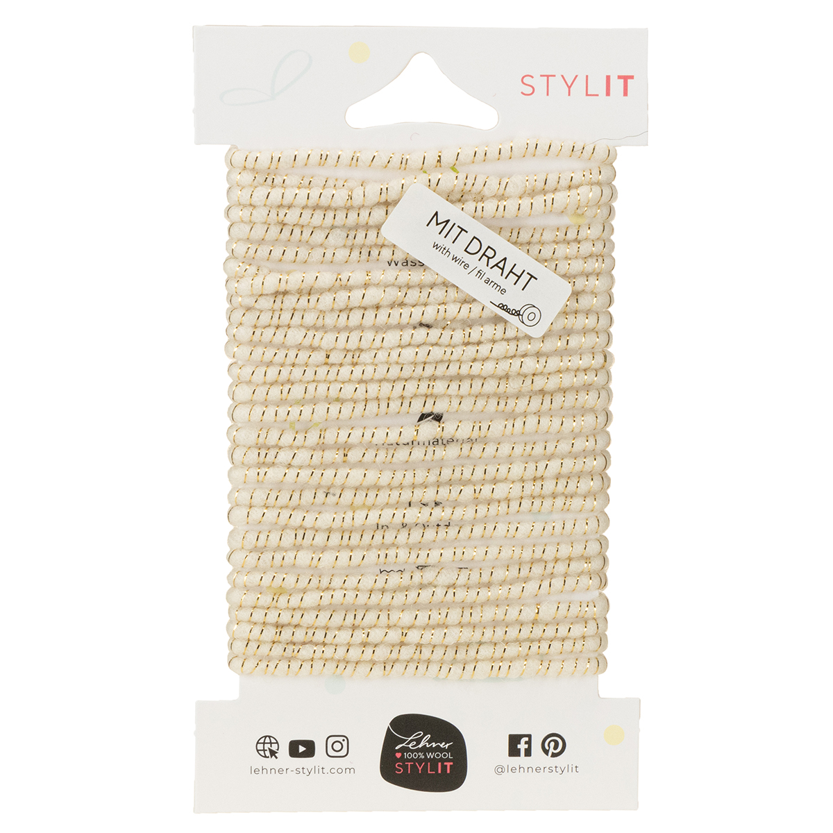 Produktname: Wollkordel Weiß Goldfaden 5m x 5mm mit Draht für Deko und Basteln