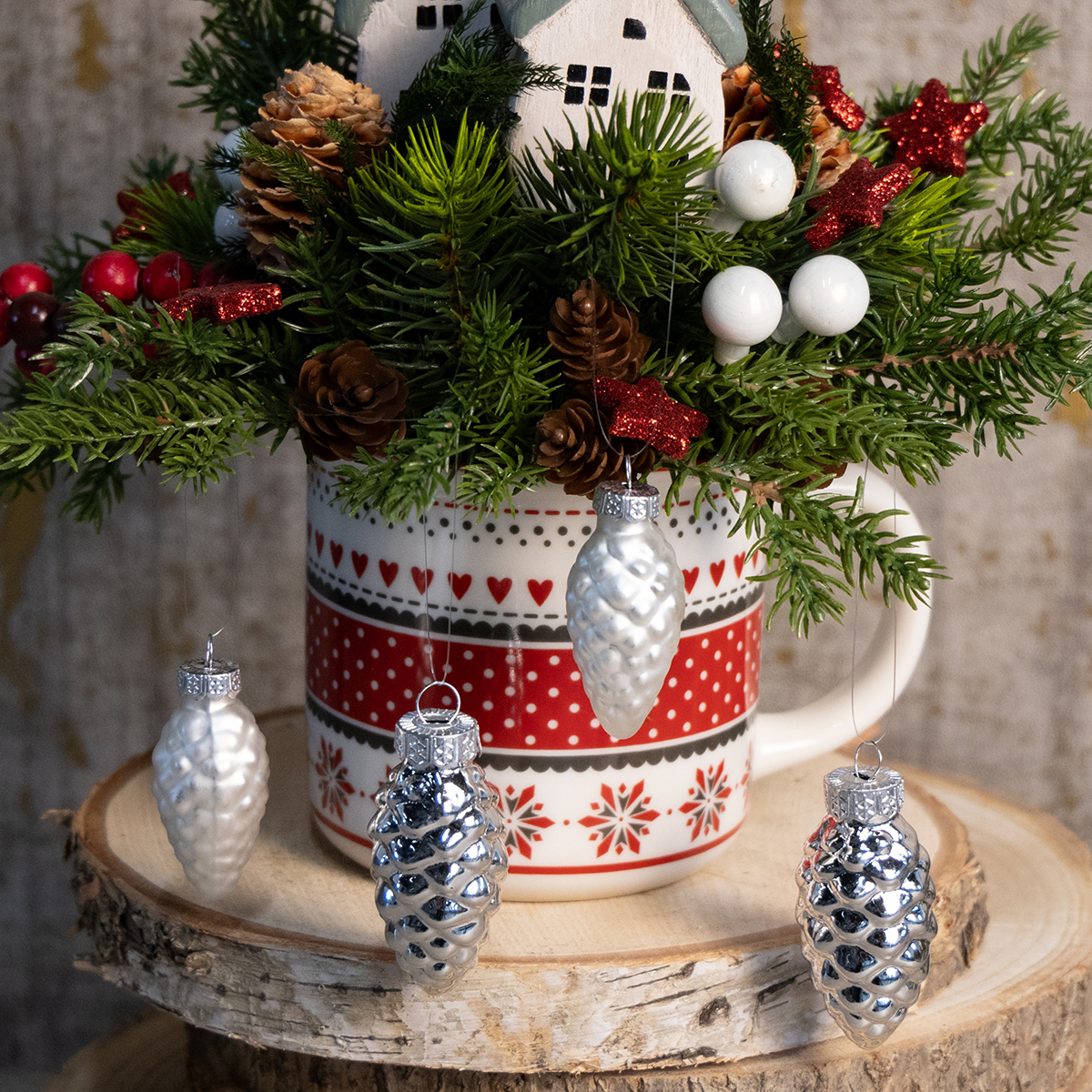Zapfenmix aus Glas in Silber 14 Dekozapfen für Weihnachtsbaum