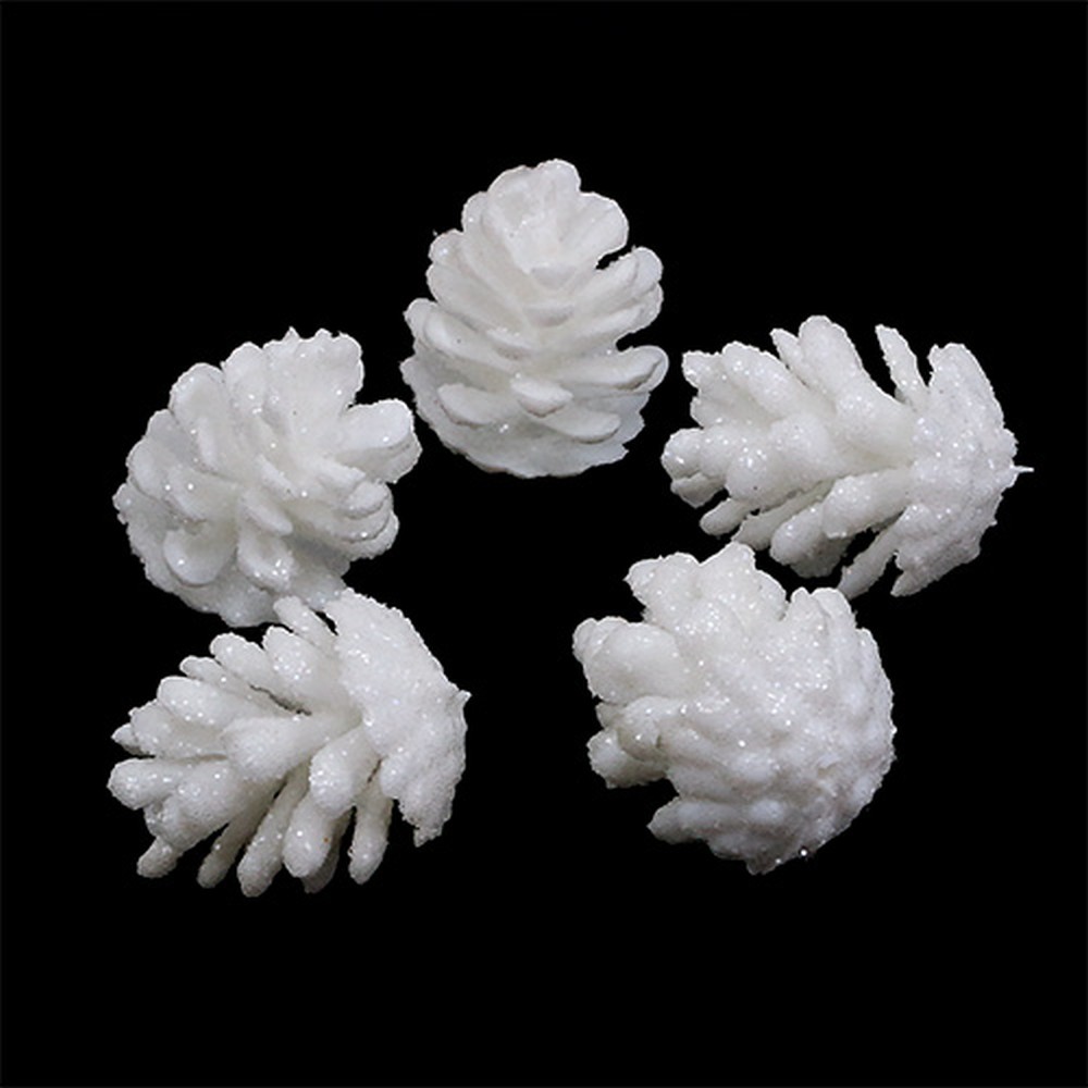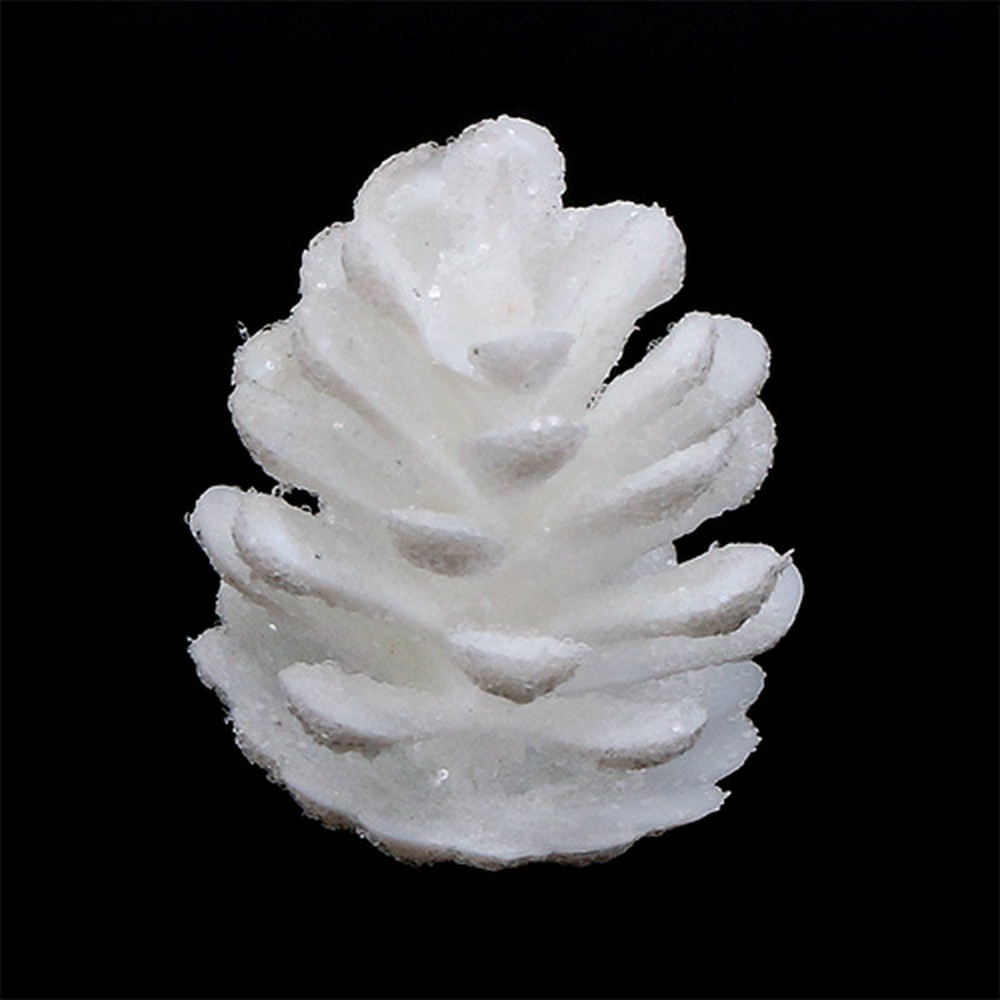 Die Dekozapfen in Weiß mit Glimmer werden zu insgesamt 45 Stück geliefert. Jeder der kleinen Zapfen ist circa 3 bis 3,5 Zentimeter groß.