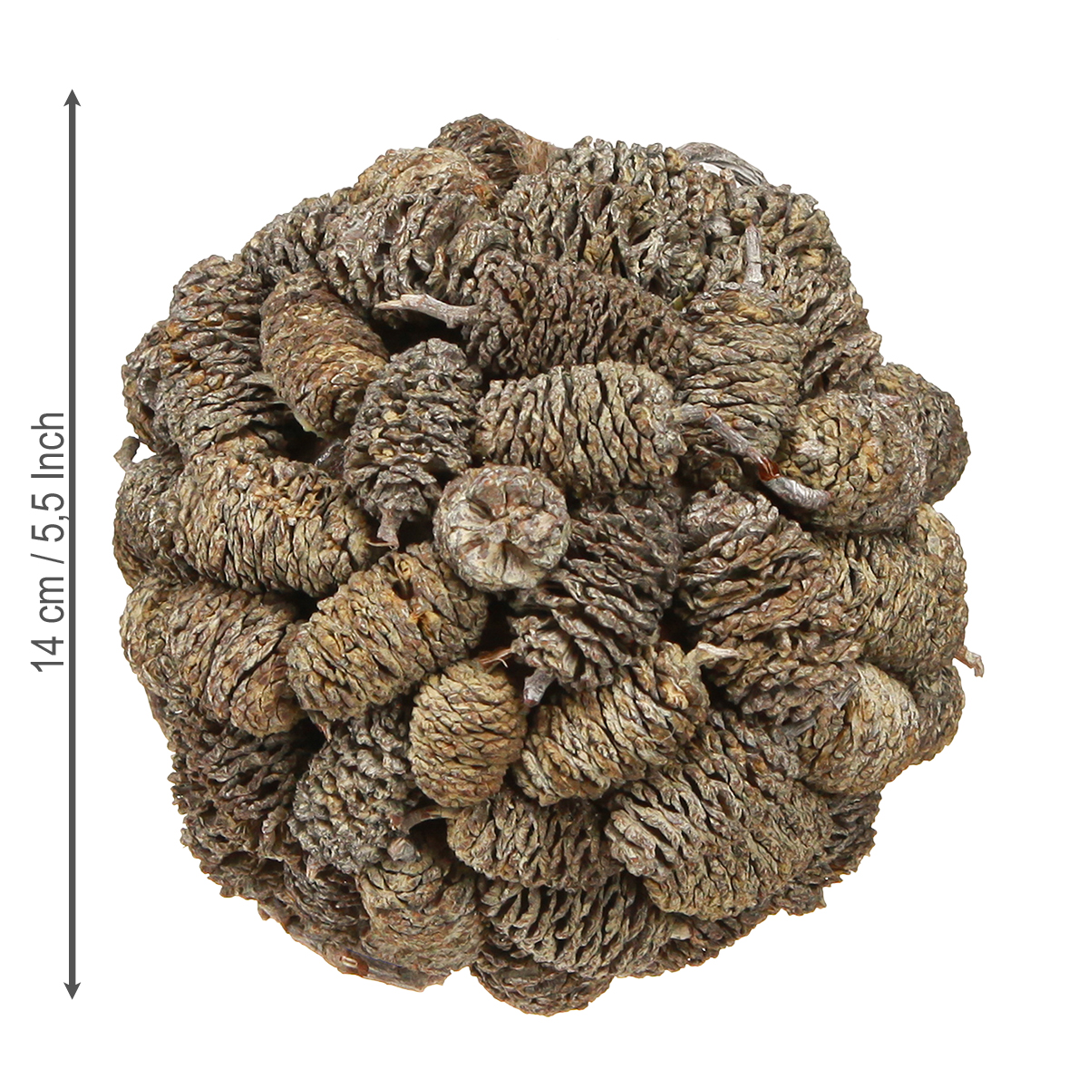 Hängen Sie sich den Winter ins Haus – oder besser gesagt an Ihren Weihnachtsbaum! Die Zapfenkugel aus weiß gewaschenen Erlenzapfen verleiht Ihrer Deko eine wunderbar natürliche Note. Ob als einzigartiger Schmuck am Weihnachtsbaum, als stilvolle Ergänzung Ihrer Winterdeko oder als festlicher Akzent auf Gedenkkränzen – dieses außergewöhnliche Stück Naturdeko schafft immer eine behagliche Atmosphäre. Der dezente Weißschimmer auf den zauberhaften Erlenzapfen bringt das winterliche Flair direkt zu Ihnen nach Hause.